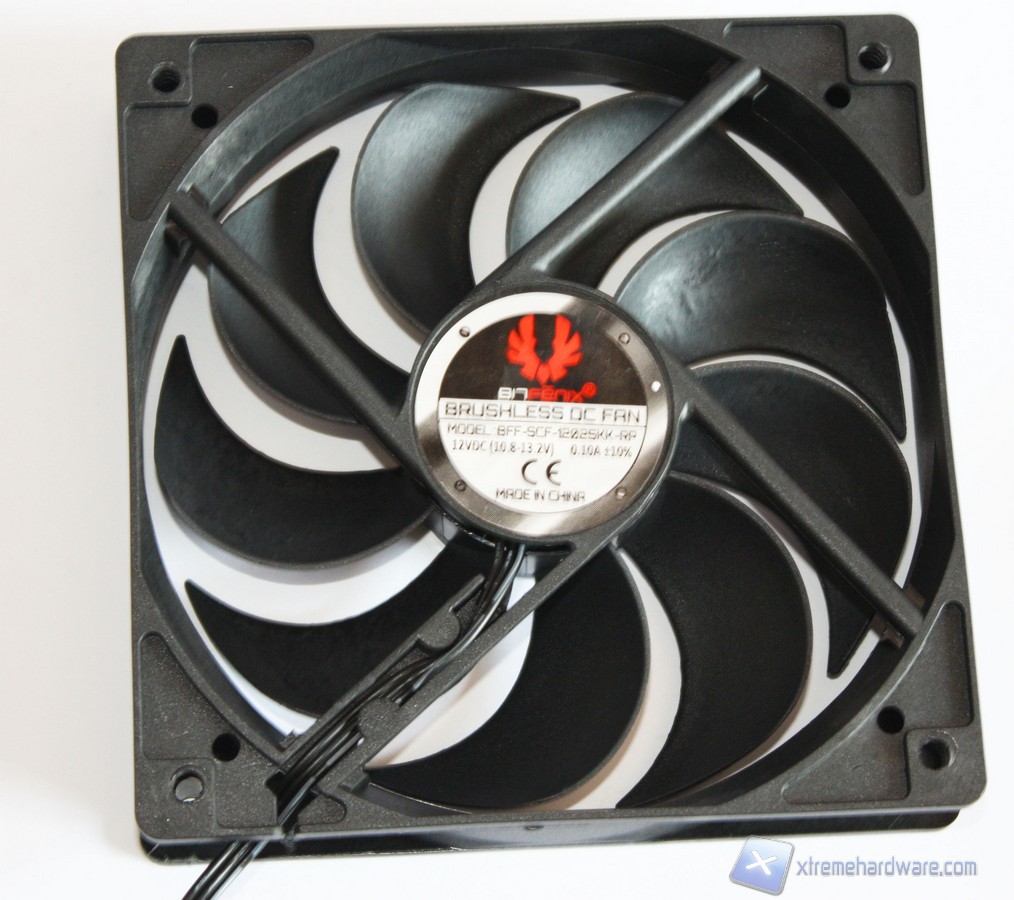 La dotazione potenziale del case è buona dato il prezzo. Comunque sia, sono fornite due ventole, entra,be da 120mm modello BFF-SCF-12025KK-RP.