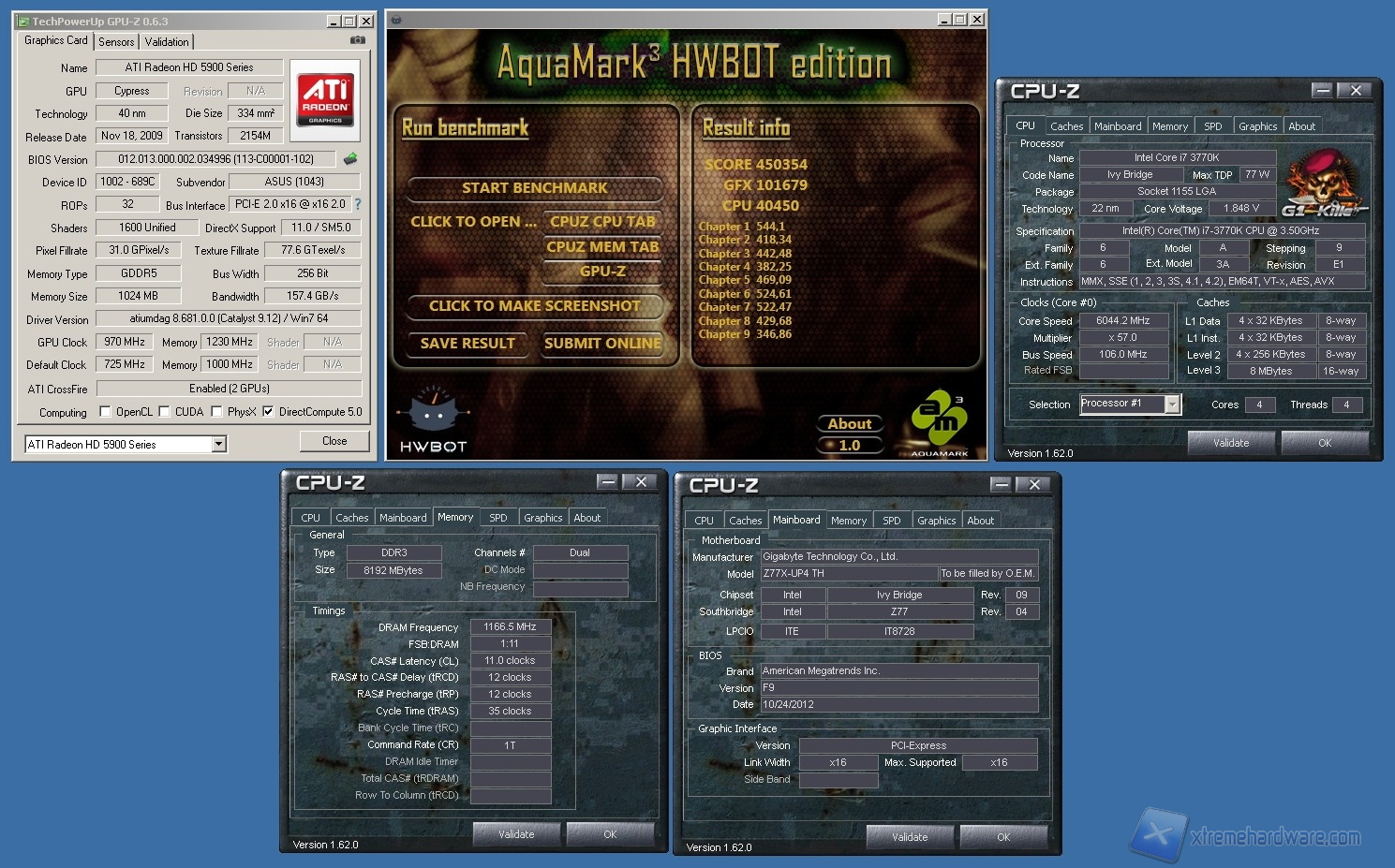 Abbiamo raggiunto una frequenza di oltre 6 GHz:  a questa frequenza il Core i7 3770k assorbe una notevole quantità di corrente arrivando a consumare ben oltre 200 Watt. Avvalendoci del tool CPU-Z ver. 1.62, in mancanza di punti di lettura per la rilevazione delle tensioni, siamo rimasti soddisfatti dall’assenza praticamente nulla di Vdroop. Purtroppo non siamo riusciti a tirare a dovere le nostre memorie, con le quali riusciamo a fare il boot su una scheda ASUS ROG ad una frequenza di oltre 2700 MHz. Da questo punto di vista possiamo forse segnalare una immaturità del BIOS